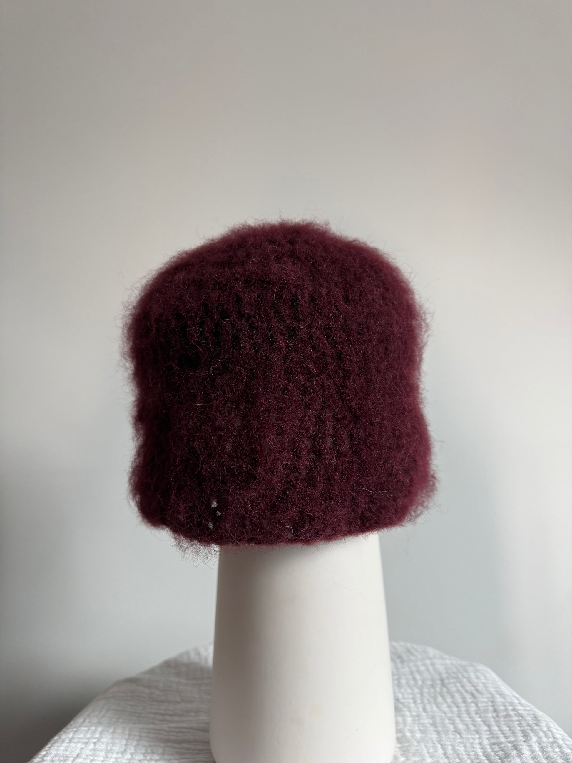 Ce bonnet est crocheté avec de la laine noble qui est ensuite brossée pour donner cet effet fluffy !