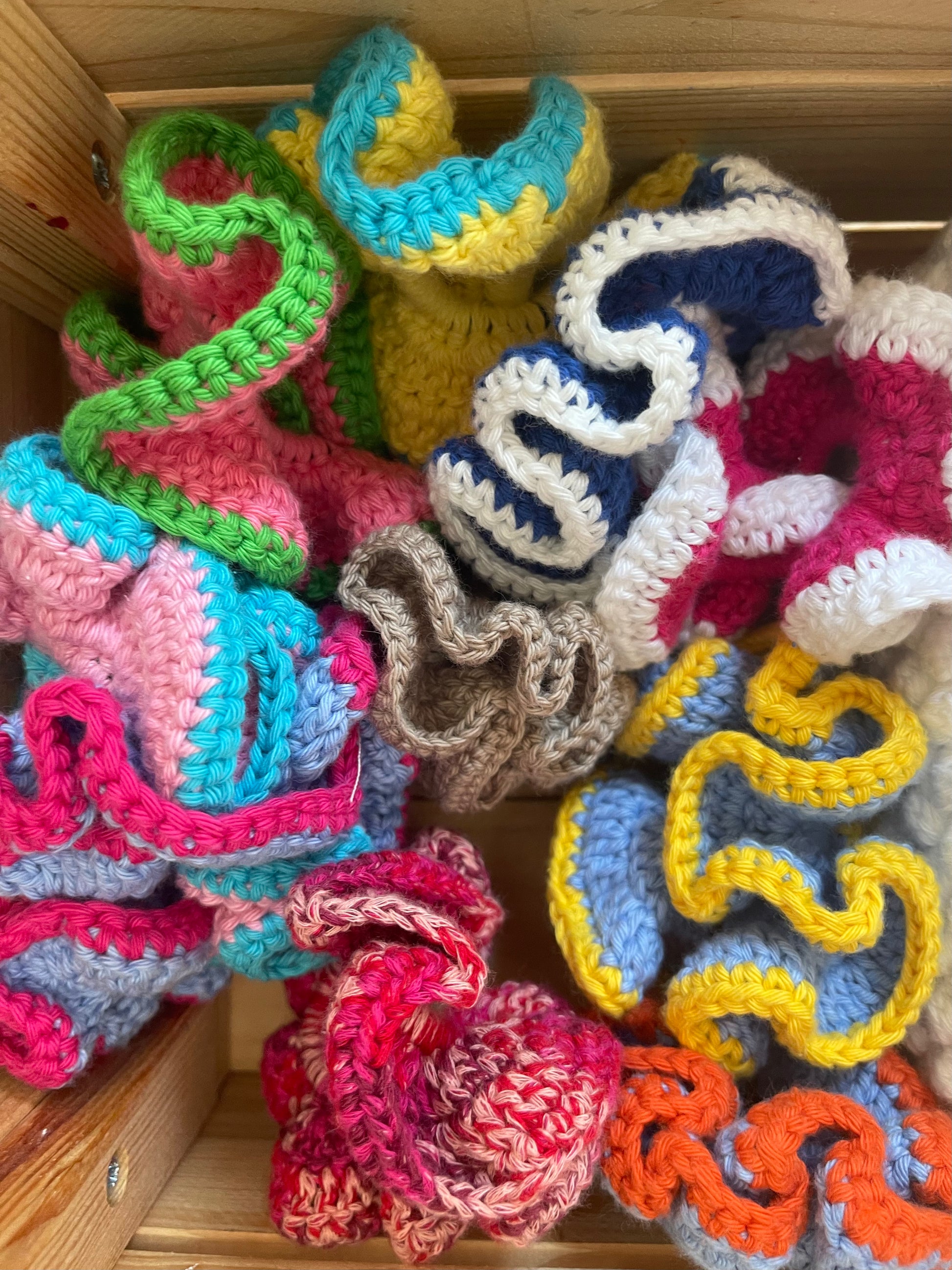 Les chouchous sont réalisés à partir de fin de pelotes, ce qui les rend uniques ! L'élastique utilisé n'a pas de coutures afin de laisser le moins de traces sur vos cheveux, et risque moins de craquer qu'un élastique traditionnel.